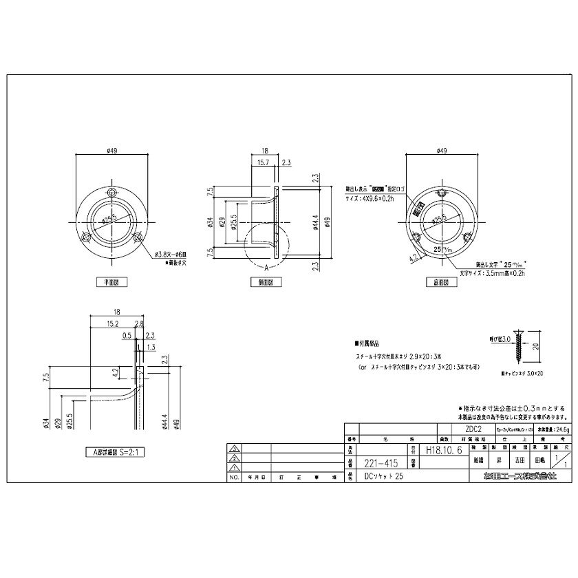 【ご確認下さい】当商品は ソケット 25.0 です 【仕様】 適用パイプ径:φ25.0 材質:ZDC 仕上:クロームメッキ 【ご注意】 ・機構(公団)住宅AI-301、AI-311該当品は221-415です。